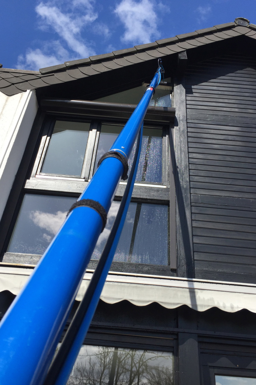 Wir reinigen Ihre Glasflächen von Außen zurzeit bis ca. 12m Höhe vom Boden aus, dank "PURAQLEEN" modernster Reinigungstechnik!